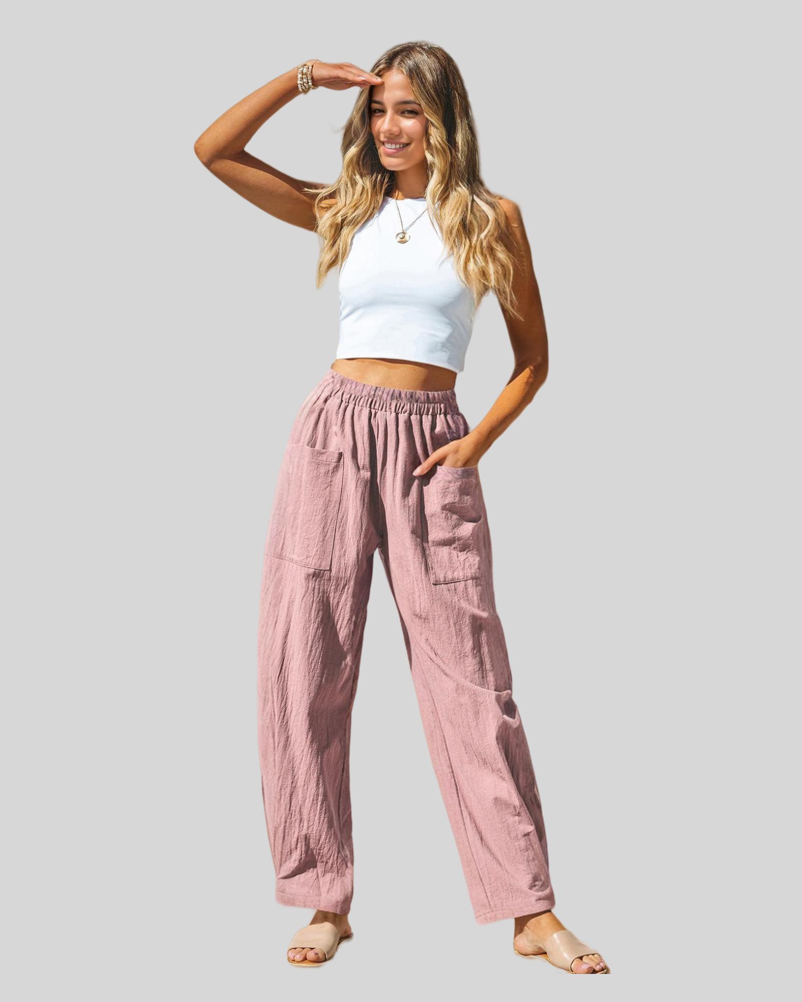 Lightweight linen blend fabric, make this women causal pants super comfortable and breathable; perfect for every body figures; trendy wide leg pants will create elongating effect; perfect for your casual, beachy or lounge wear