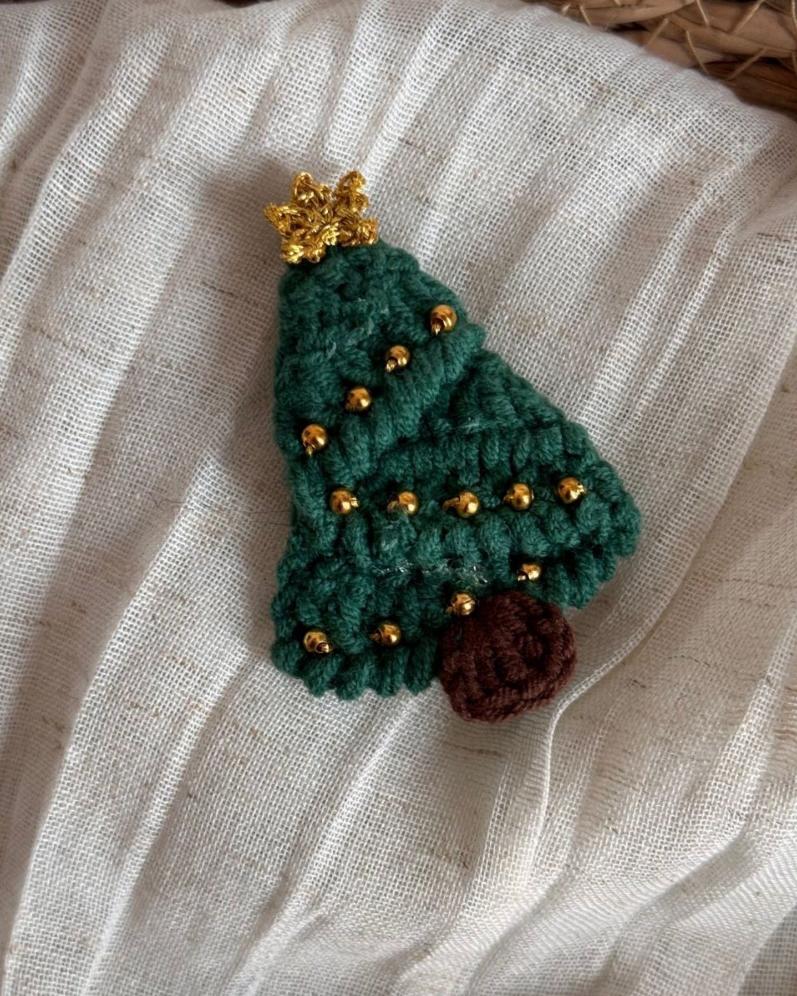 🎄 A mini Christmas tree clip — decorated with tiny golden details for a festive sparkle